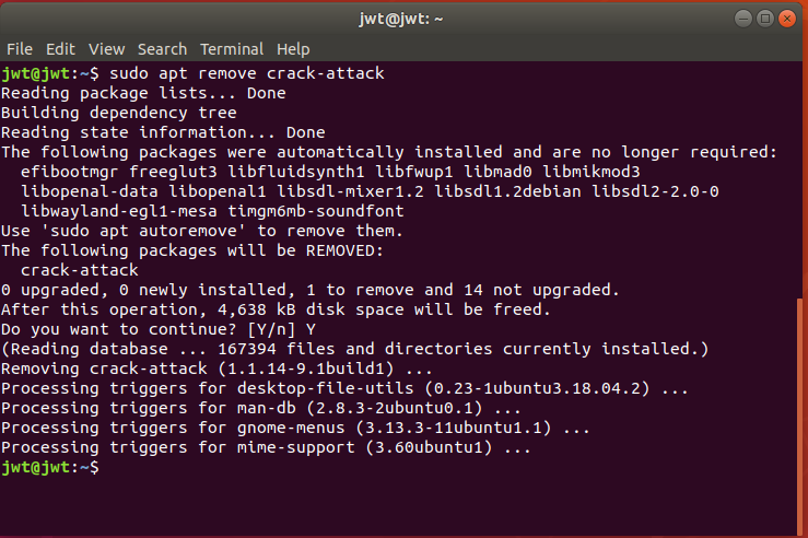 'sudo apt remove 프로그'을 입력한다.'