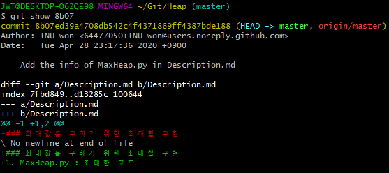 - 해당 커밋에서 어떻게 변했는지 상세히 보고 싶을 때