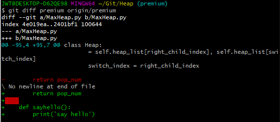 - 그 후 git diff 명령어를 이용하여 어느 부분이 다른지 확인하면 된다.