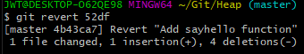- 가장 최근에 한 커밋을 취소하고 싶을 때 'git revert [해당 커밋 ID]'를 입력해주면 된다.