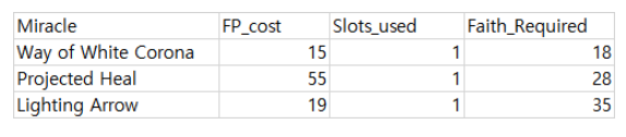 Index(['Miracle', 'FP_cost', 'Slots_Used', 'Faith_Required'], dtype='object')