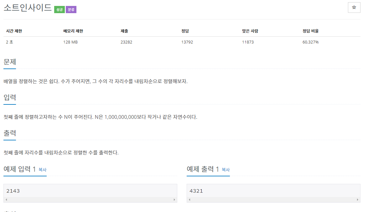 [파이썬][백준] 1427번: 소트인사이드 본문