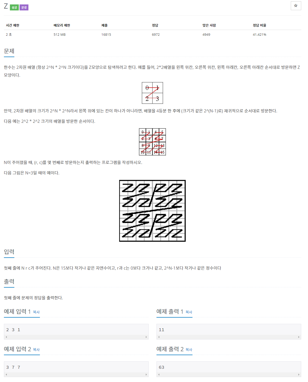 [파이썬][백준] 1074번: Z 본문