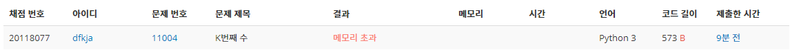 - Quick Slection으로 정렬하지 않고 바로 k번째 수를 찾으려 하였으나 메모리 초과