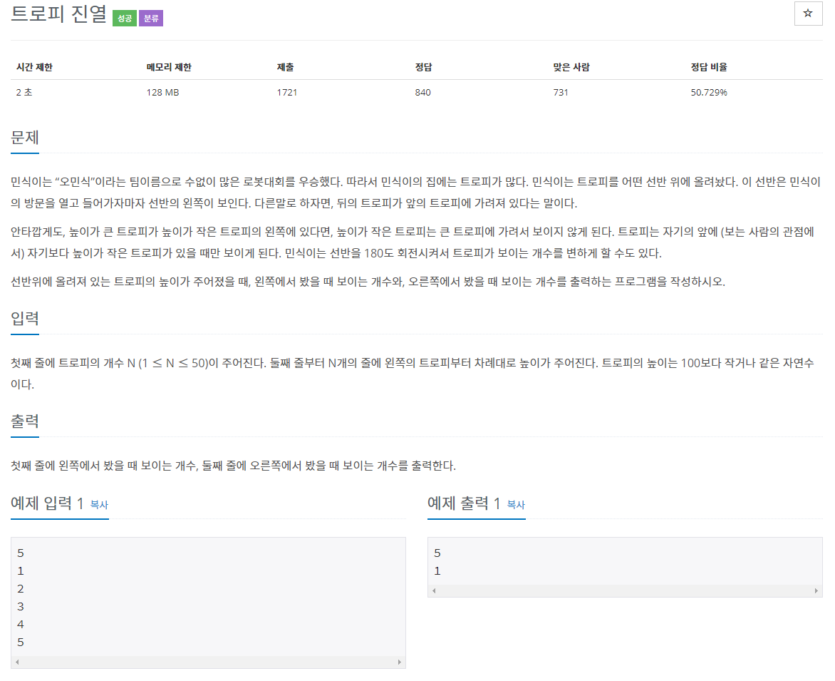 [파이썬][백준] 1668번: 트로피 진열 본문